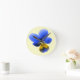 This awesome clock features a photograph of a wild Pansy flower. The photo has been artificially coloured resulting in a pansy with light and dark shades of blue and a pale yellow centre. The background is pale yellow to show off the beauty of this flower to the maximum.