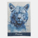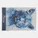 A big cat rendered in blue splatter paint makes a beautiful kitchen towel. Perfect for anyone who loves big cats, wildlife, nature, and the outdoors. Personalize with your name in a dark blue band at the bottom.