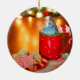 Blue parakeet, or budgie, settles into a holiday mug and waits for a chance to grab some Christmas cookies bird lovers Christmas ornament