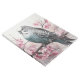 Blue parakeet perched on a branch with pink blossoms wall art.