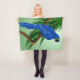 Blue parrot art featuring a Hyacinth Macaw perched on branch with large palm leaves in background