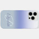 This phone case design features a pastel blue ombre background with darker blue script name and white initial letter monogram. Personalize the text fields, remove any or all text or click customize to select a font style, size, and color you like.