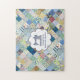 This colorful patchwork quilt patterned puzzle can be personalized with a name or text and makes a unique gift for quilters or sewing artists who love puzzles. Choose your size and number of pieces to make it as easy or challenging as you like. Realistic patchwork quilt design accented with faux stitched applique and text quote.