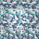 Cool patchwork fabric, created in distressed look stripes of different blues and white. Resulting in a contemporary camouflage style.