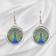 Look glamorous with these stylish, sterling silver plated drop earrings designed for pierced ears that feature the photo image of a blue Peacock with colorful fantail feathers. A fun and trendy design!