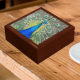 Store trinkets, jewelry and other small keepsakes in this wooden gift box with ceramic tile featuring a photo image of a lovely, blue Peacock with colorful fantail plumage. Select your gift box size and color.