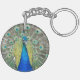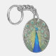 Double-sided, acrylic keychain that features the photo image of a beautiful, blue Peacock with colorful feather plumage. Select your keychain style.