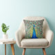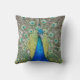 Decorate your home or outdoor patio with this square throw pillow that features the photo image of a beautiful, blue Peacock with colorful feather plumage. Select your pillow size and fabric style.
