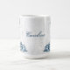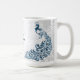 Enjoy your morning coffee with a Blue Peacock Personalized Coffee Mug. Mug design is a visually striking item, featuring a vibrant metallic blue peacock with iridescent feathers shimmer with hues of sapphire blue, and cobalt, creating a bold and luxurious focal point. Set against a gray grunge background, adorning the design are delicate white leaf botanicals, intricately woven around the peacock. These leaves add a touch of elegance and nature-inspired softness, softening the grunge background’s roughness while complementing the peacock’s regal presence. Elegant script lets you add your name or recipients name for a personal gift.