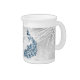 Serve your hot or cold beverages with this unique Blue Peacock Personalized Porcelain Pitcher. Pitcher is a visually striking beverage item, featuring a vibrant metallic blue peacock with iridescent feathers shimmer with hues of sapphire blue, and cobalt, creating a bold and luxurious focal point. Set against a gray grunge background, adorning the design are delicate white leaf botanicals, intricately woven around the peacock. These leaves add a touch of elegance and nature-inspired softness, softening the grunge background’s roughness while complementing the peacock’s regal presence. Elegant script lets you add your name or recipients name for a personal gift.