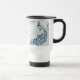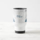 Enjoy your morning coffee on the go with a Blue Peacock Personalized Travel Mug. Travel mug is a visually striking item, featuring a vibrant metallic blue peacock with iridescent feathers shimmer with hues of sapphire blue, and cobalt, creating a bold and luxurious focal point. Set against a gray grunge background, adorning the design are delicate white leaf botanicals, intricately woven around the peacock. These leaves add a touch of elegance and nature-inspired softness, softening the grunge background’s roughness while complementing the peacock’s regal presence. Elegant script lets you add your name or recipients name for a personal gift.