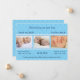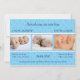 A soft blue floral wallpaper pattern forms the background for this sweet baby announcement perfect for introducing your beautiful twins to the world. Three placeholders framed by a row of white pearls are waiting for your own photos. Just customize each text placeholder for each of your little angels. Available in alternate colors with matching postage and favors.