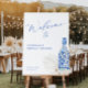Celebrate in style with our exquisite "Pearls and Prosecco" bridal shower welcome sign. This elegant design features a stunning watercolor illustration of a blue floral prosecco bottle adorned with lustrous pearls and delicate white flowers such as roses and peonies, setting the tone for a sophisticated and glamorous event. This welcome sign is beautifully accented with an elegant blue modern script font, adding a touch of luxury and charm to the overall look.