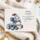 Celebrate a joyful winter baby shower with this charming design featuring a hand-painted penguin in a Santa hat and scarf, surrounded by stacked gift boxes and festive blue ornaments. The soft watercolor style and cool tones create a playful and cozy vibe—perfect for welcoming a baby boy during the holiday season.