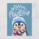 Blue Penguin Christmas Holiday Postcard for Kids
