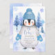 Blue Penguin knitted Hat Snowflakes Baby Shower Invitation