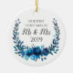 Blue Peonies First Christmas as Mr & Mrs Ceramic Ornament
