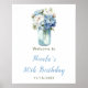 Blue Peonies Mason Jar Birthday Welcome Poster