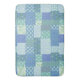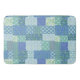 A chic Boho Large Bath Mat, with a country-style Faux Patchwork of various pretty Periwinkle florals and coordinating Check Gingham patterns in Blue, Green and White. Part of the Posh and Painterly 'Periwinkle Patch' collection, this pattern can easily be adjusted to fit any Bath Mat.