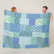 Blue Periwinkle Floral Boho Faux Patchwork Pattern Fleece Blanket