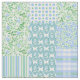 A chic Boho Fabric to grace your home, with a country-style Faux Patchwork of various pretty Periwinkle florals and coordinating Polka Dot, Striped and Plaid patterns in Pale Blue, Green and White. Part of the Posh and Painterly 'Periwinkle Patch' collection, this pattern can easily be adjusted to fit any Fabric.