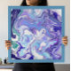 Dark blue, light blue, periwinkle and white marble fluid art in pour painting style art.