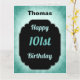 Stylish blue and black personalised 101st birthday design greeting card.