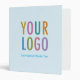 Easily personalize this Avery blue 3-ring binder with your company logo or other image and custom text. Custom printed binders are ideal for portfolios, presentations, and other essential documents for business. Available in 1 inch, 1.5 inch, and 2 inch spine. No minimum order quantity and no setup fee.