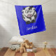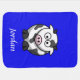 This gorgeous baby blanket is in a bright blue color that baby is sure to love. The main image is a cute moo cow and it can be personalized with your baby's name.