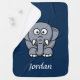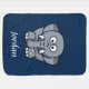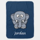 This gorgeous baby blanket is in a navy blue color that baby is sure to love. The main image is a cute looking elephant and it can be personalized with your baby's name.