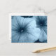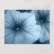 A bright and colorful photograph of two digitally tinted blue petunias in bloom