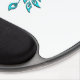 The plastic backing is nice and sturdy. The grippy pads underneath keep the mouse pad where I put it on my table. The pad the mouse sits on is cut well to fit the backing. The wrist pad is perfectly soft, supportive, and thick. I'm left-handed, and this mouse pad works just as well for me as it does for my right-handed friends. I'm the designer of HippieClecticHope products. I'm blown away by how well my intricate fractals turn out on the tangible items in the Zazzle Marketplace. This particular mouse pad ***appears*** like a 3D object... A mathematically-engineered rainbow black opal, inlaid under transparent fabric...