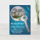 This new home announcement card features a keyring with a key attached representing the key to your new home. The key is silver and the keyring holds a space to insert a photo of your new home. The card is blue with stripes. Very modern and unique with clean lines. If you're moving into a new place this is great to send to your friends and family.