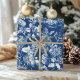 Blue Pine Cones and Branches Christmas Toile Wrapping Paper