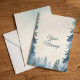 Pretty pine trees your message holiday note card. Delightful hand-painted watercolor style illustration of snow-dusted pine trees standing tall against a soft blue winter sky. The delicate snowflakes and charming trees create a peaceful and wintry scene, perfect for sending warm wishes to loved ones this holiday season.