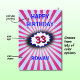 The background for this eye-catching birthday card is an explosion in deep pink and pale blue, with a blue-edged burst to emphasise the number. There is a vintage comic retro vibe to the design with crisp bright colors and text. Edit the Happy Birthday greeting on the front, edit the number, change the name, and personalize the message inside as well (currently this reads simply "It's just a number...").