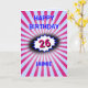 The background for this eye-catching birthday card is an explosion in deep pink and pale blue, with a blue-edged cloud burst. There is a vintage comic retro vibe to the design with crisp bright colors and text. Edit the Happy Birthday greeting on the front, edit the number, change the name, and personalize the message inside as well (currently this reads "Ker-Pow! It's your Birthday!", with a pale blue background).