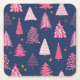 Blue & Pink Christmas Tree Pattern Square Paper Coaster