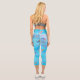 BLUE PINK COLORFUL LEAF PATTERN CAPRI LEGGINGS