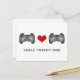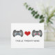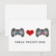Quirky and totally geeky chic is this Cute Gamer Wedding Table Number Postcard featuring a video game controller with blue buttons and one with pink buttons. A heart in the middle connects the two controllers. This nerdy table card is perfect for the gaming couple. Easy to customize, simply add the appropriate table number(s) in the text field provided. Click "Customize It" to find more personalization options.