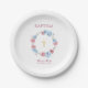 Blue Pink Floral Watercolor Baptism Christening Paper Plates