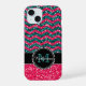 Black and pink glitter chevron pattern phone case. Personalized with your name and monogram.
