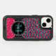 Black and pink glitter chevron pattern sturdy defender otter box iPhone 14 case. Personalized with your name and monogram.