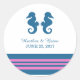 Elegant and classic Nautical Seahorse Wedding Stickers with a pair of simple seahorses and an array of stripes in dark navy blue and pink. These nautical beach themed stickers can be easily customized with your wedding details. For more customization options, click on the Customize It button.