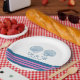Elegant and classic Nautical Sea Shells Wedding Paper Plates with a pair of simple seashells and an array of stripes in dark navy blue and pink. These nautical beach themed plates can be easily customized with your wedding details. For more customization options, click on the Customize It button.