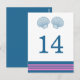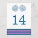 Elegant and classic Nautical Sea Shells Wedding Table Number Postcard with a pair of simple seashells and an array of stripes in dark navy blue and pink. This nautical beach themed table card can be easily customized with your wedding details. For more customization options, click on the Customize It button.