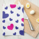 Blue Pink Valentines Day Hearts Pattern kitchen towel.