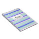 Notebook with blue pink white painted stripes design. The label text is customizable. Designed with a smile by iolantesdesigns :-)!