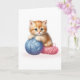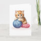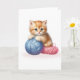 Blue & Pink Yarn Bright-Eyed Kitten Blank Greeting Card