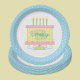 Blue Pink Yellow 5th Birthday Name Cake Paper Plates